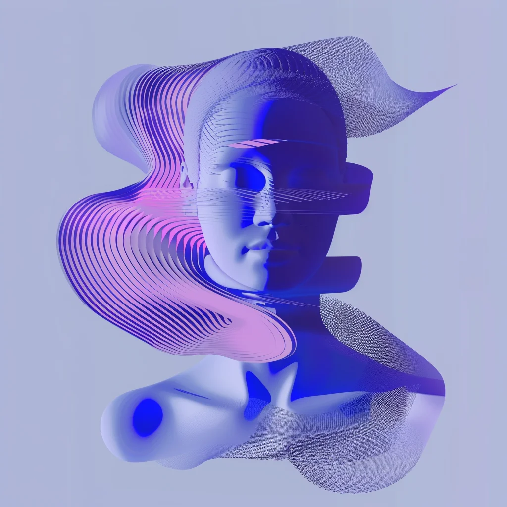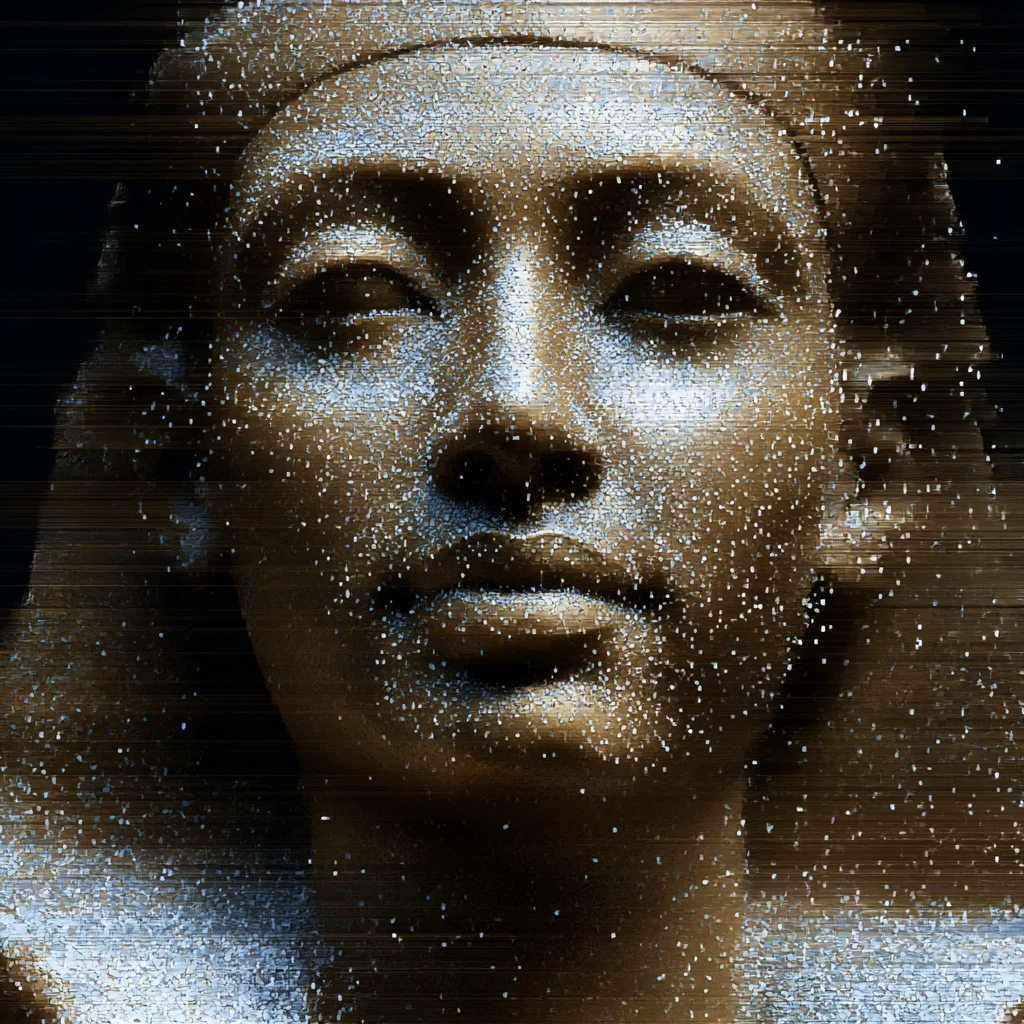 Digital noise obscures ancient faces. Flowing lines dissolve into static. Typography dances at the edge of legibility. This series explores the tension between signal and degradation, finding beauty in the artifacts left when information begins to fade.